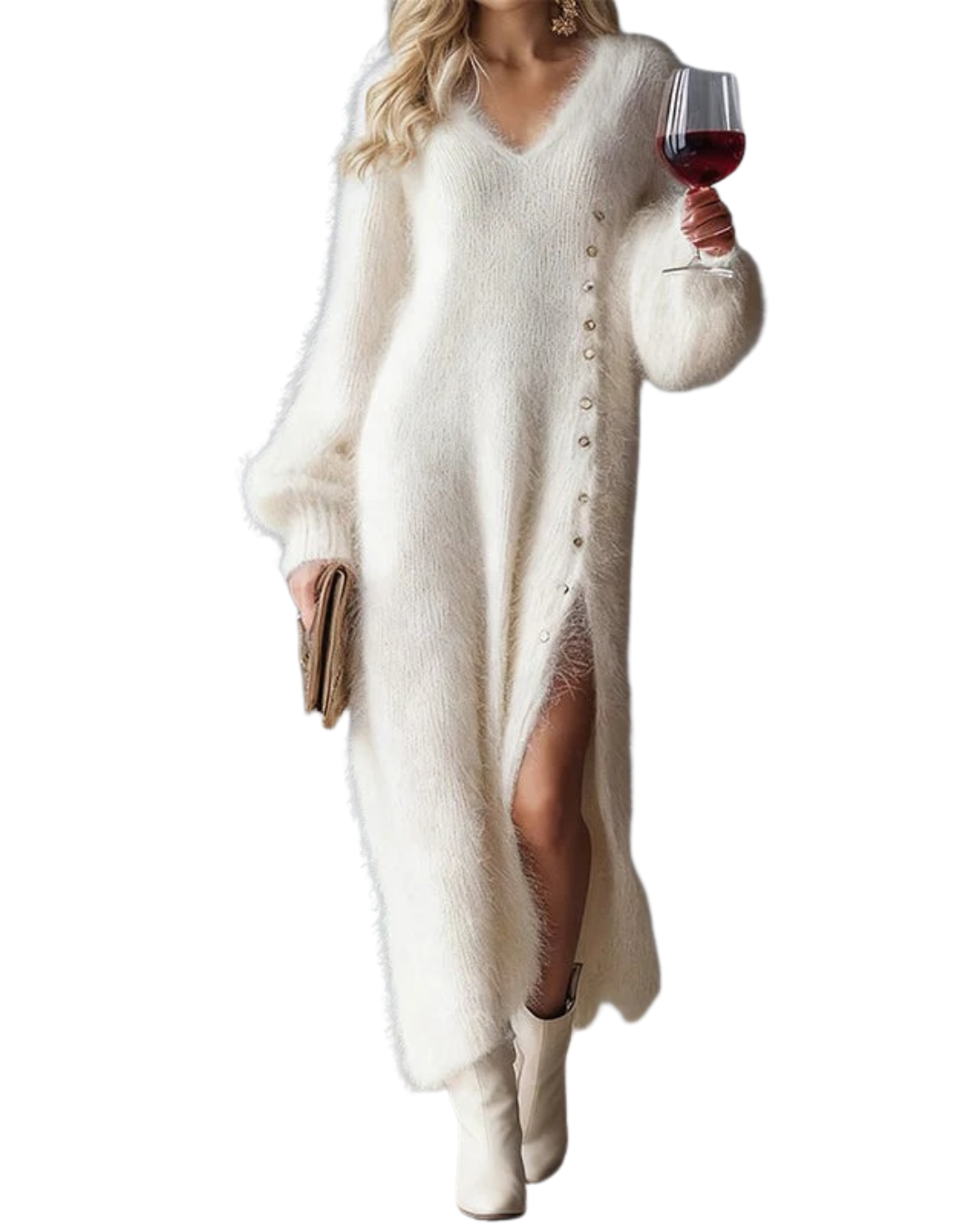 Ob beim Weihnachtsessen mit der Familie, auf einer festlichen Feier oder bei einem ruhigen Abend mit einem Glas Wein – dieses Kleid macht jeden Wintermoment besonders.